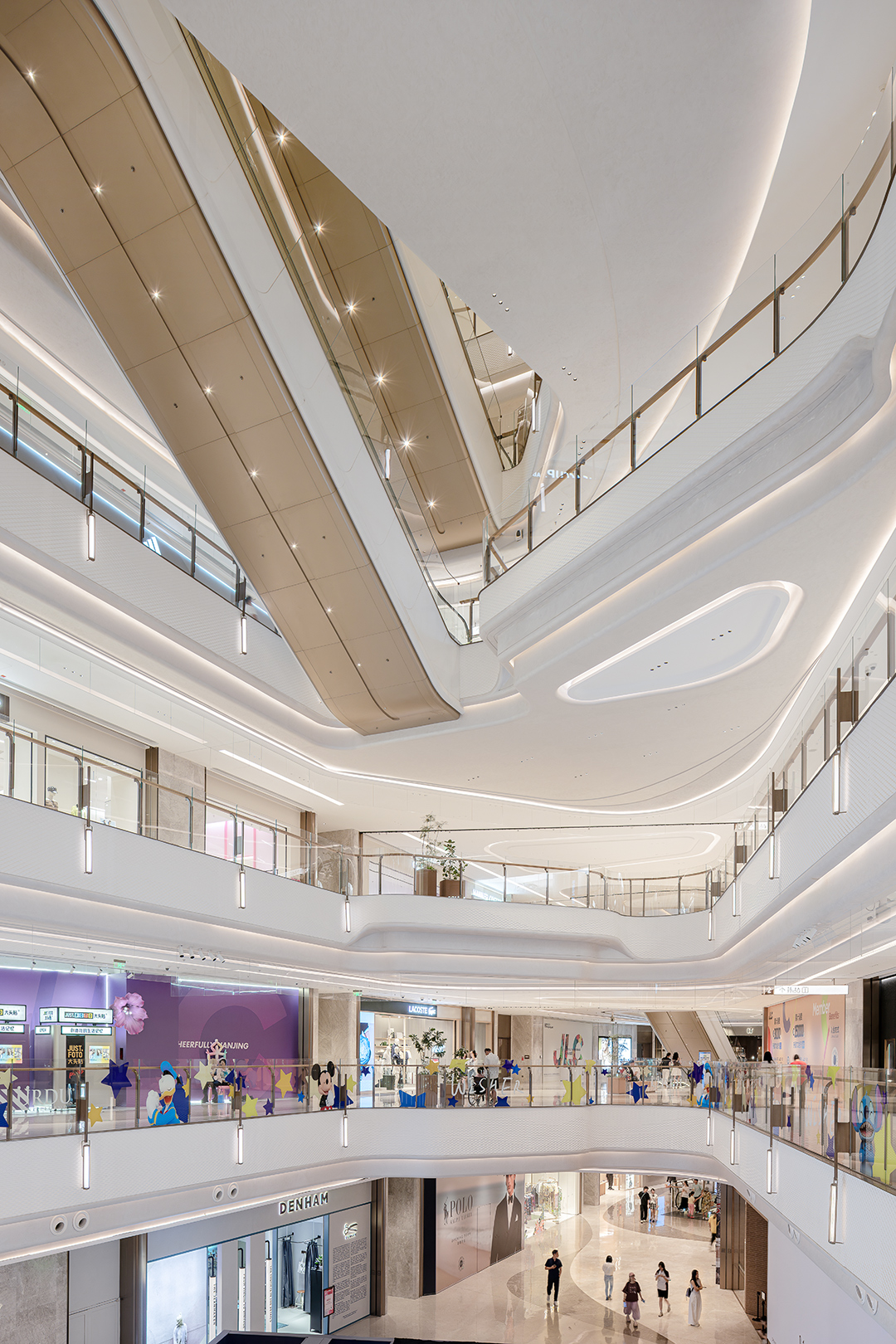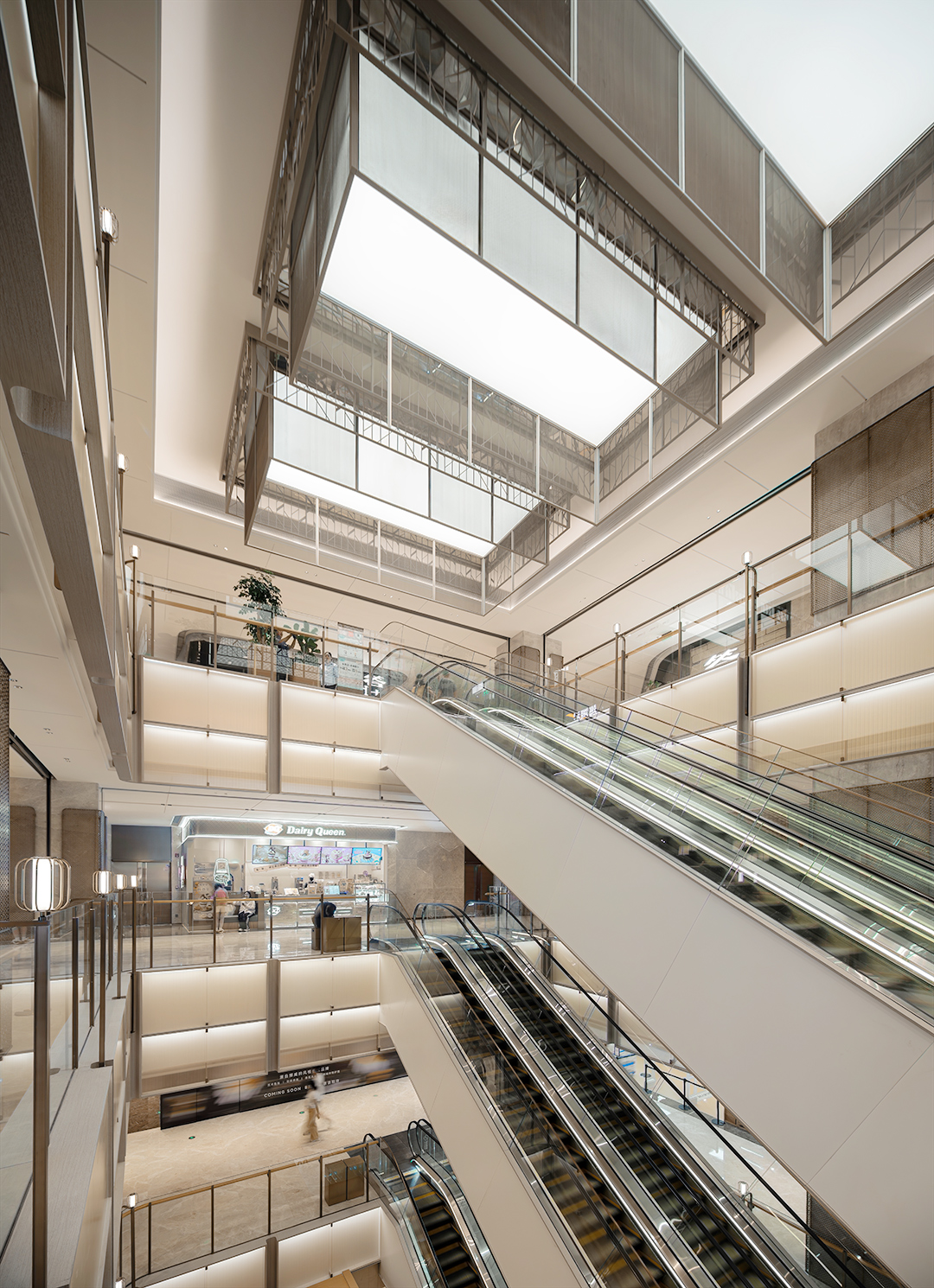 JLC在空间布局上借鉴了传统院落的“三进”理念,营造了层层递进的空间体验,从入口、中庭再到中央广场,每一步都充满仪式感和艺术性。30米挑高中庭和充满南京文化元素的纹样装饰,也巧妙融合了香港置地一贯低调奢华的空间美学,带来沉浸式的场景体验。